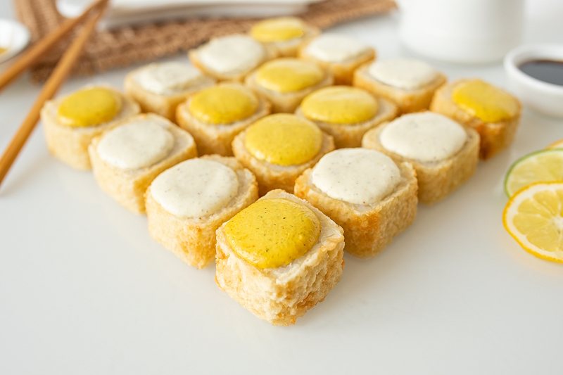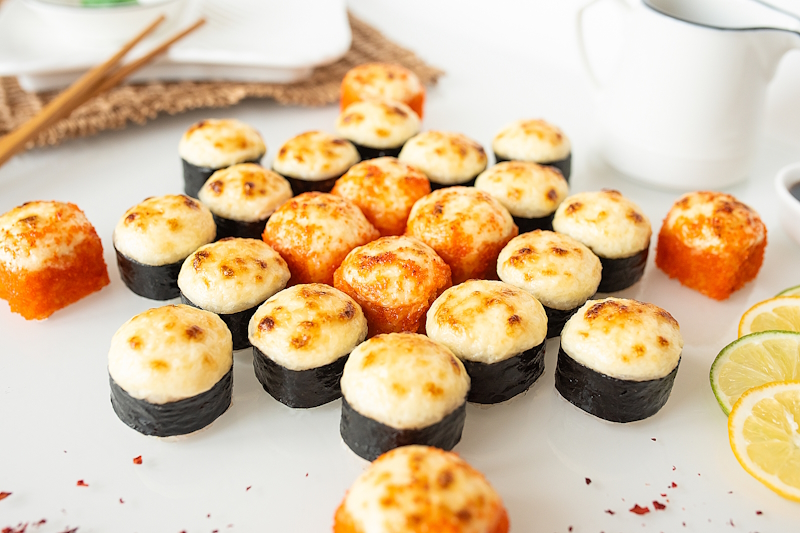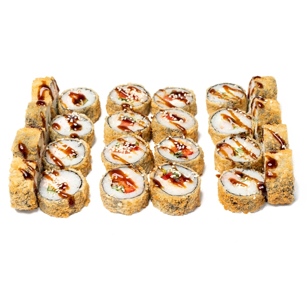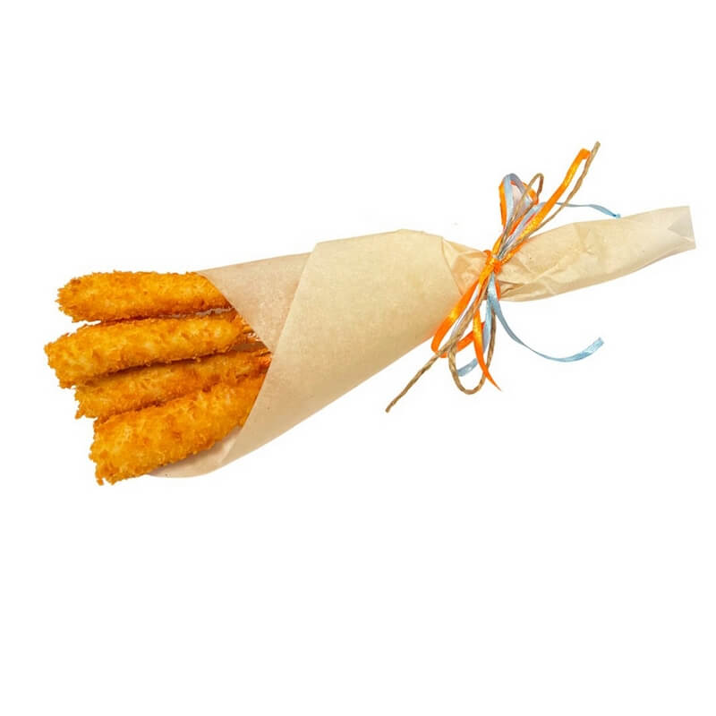 Неповторимая текстура и аромат отборных тигровых креветок в кляре и сухарях Панко. А пикантность и свежесть цитрусовых нот этой закуски придаёт соус Никкей.