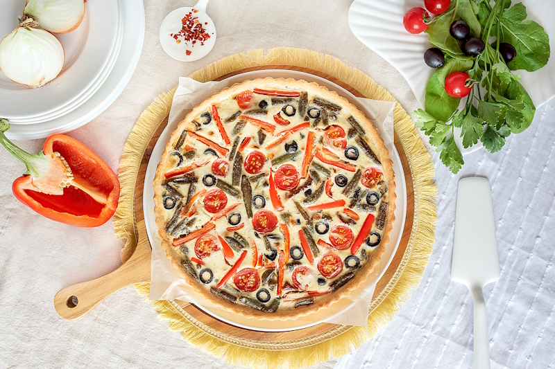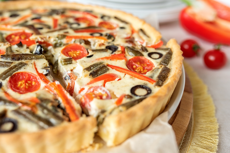 Тесто (мука, дрожжи сухие, сахар, соль, масло растительное, вода), сыр моцарелла, перец болгарский, креветки тигровые, оливки, соус том ям, кинза