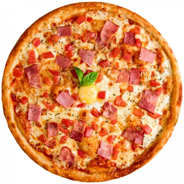 Тесто (мука, дрожжи сухие, сахар, соль, масло растительное, вода), сыр моцарелла, ветчина, соус фирменный