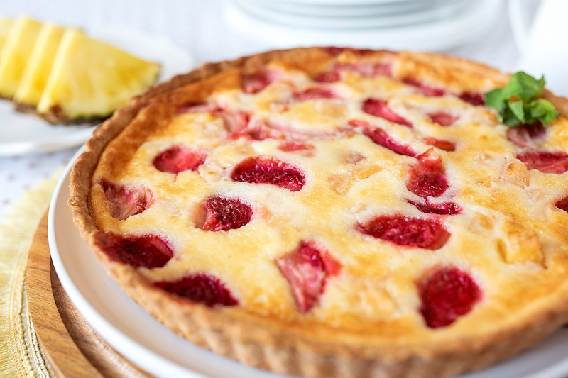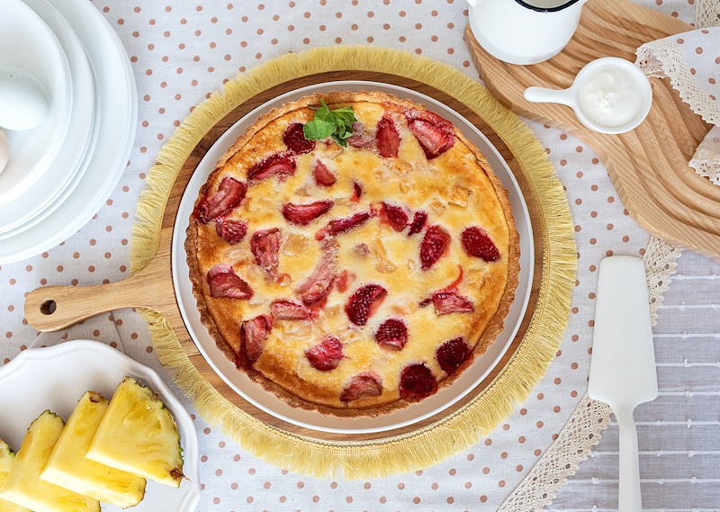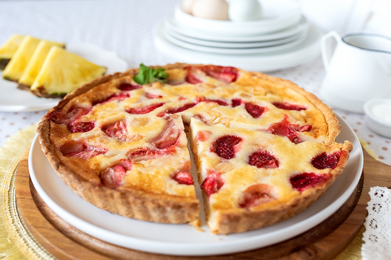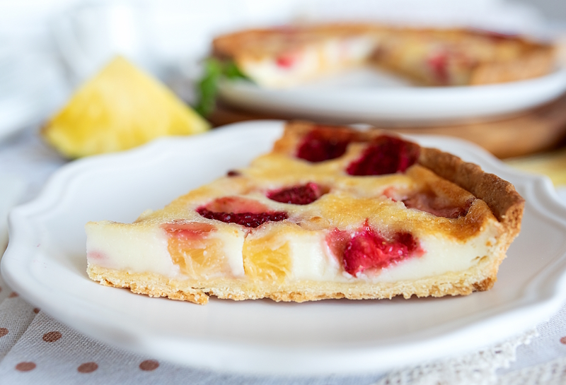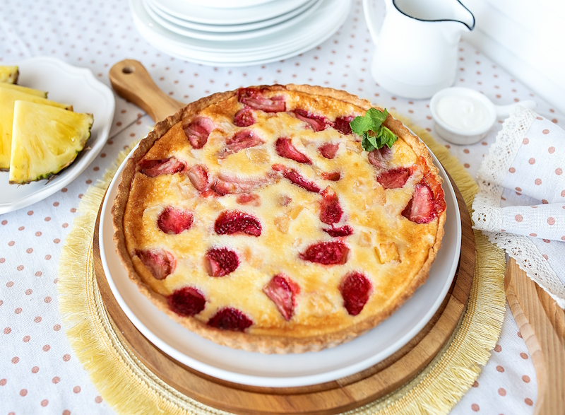 Шоколадный блин (мука, яйцо, какао-порошок, масло растительное, топинг), сыр Креметте, банан, киви, ананас, топинг, лепестки миндаля