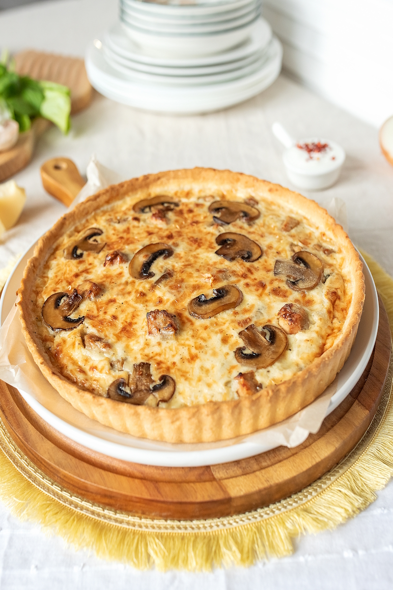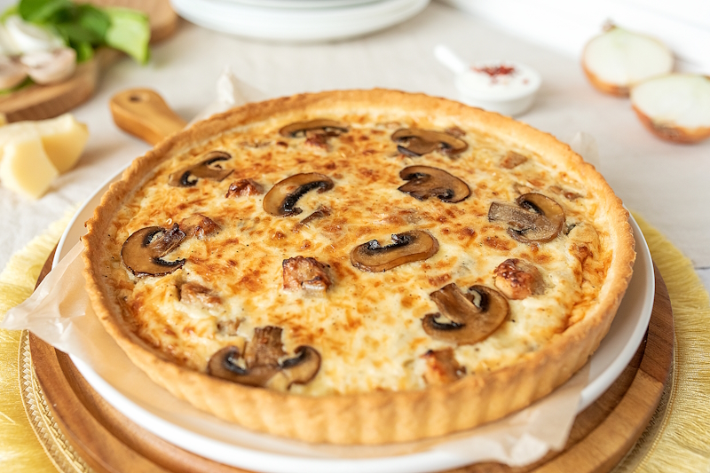 Тесто (мука, дрожжи сухие, сахар, соль, масло растительное, вода), курица копченая , сыр моцарелла, сливки 22%, устричный соус, ветчина, пепперони, томаты, орегано сух.
