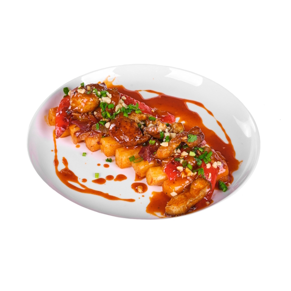 Кусочки куриного филе в хрустящей панировке в кисло-сладком соусе. Попробовав один раз, вы влюбитесь в этот неповторимый пикантный вкус :).