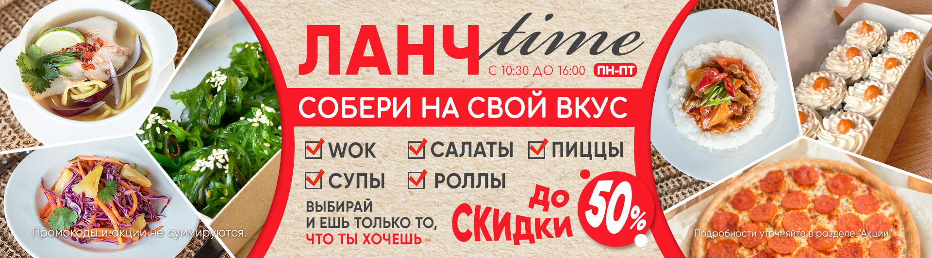 Π ΠΎΠ±Π΅Π΄Π΅Π½Π½ΠΎΠ΅ Π²ΡΠ΅ΠΌΡ ΡΠΊΠΈΠ΄ΠΊΠΈ Π½Π° Π½Π΅ΠΊΠΎΡΠΎΡΡΠ΅ Π±Π»ΡΠ΄Π° Π΄ΠΎ 50%! ΠΡΠΈ ΡΠ°Π·Π΄Π΅Π» "ΠΠ°Π½ΡΠ’Π°ΠΉΠΌ" Π½Π° ΡΠ°ΠΉΡΠ΅ Ρ 10:30 Π΄ΠΎ 16:00 Ρ ΠΏΠΎΠ½Π΅Π΄Π΅Π»ΡΠ½ΠΈΠΊΠ° ΠΏΠΎ ΠΏΡΡΠ½ΠΈΡΡ.